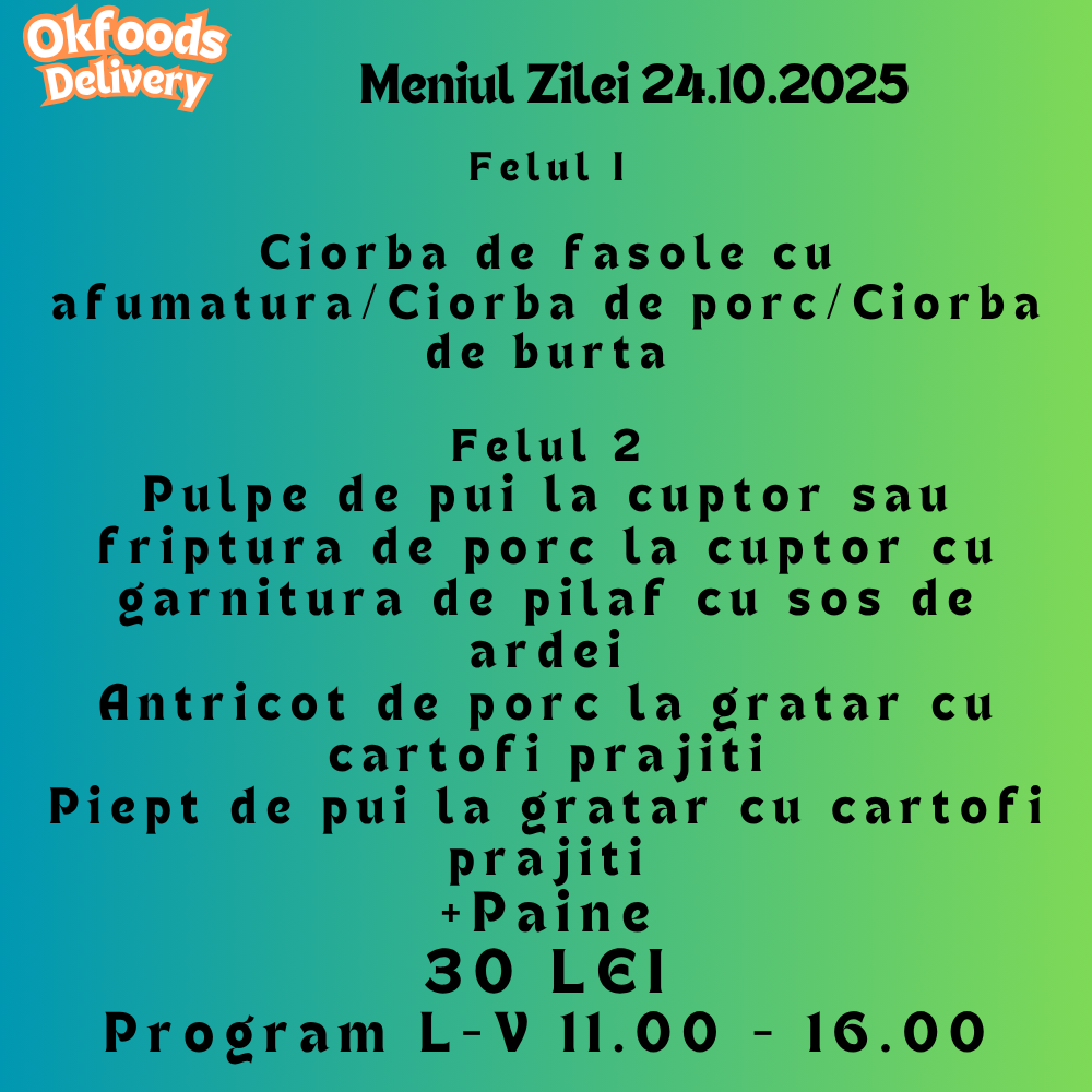 Comanda telefonic la 0771257257 si livram Meniul Zilei oriunde in Caracal.Livrari rapide si sigure, direct la usa ta!